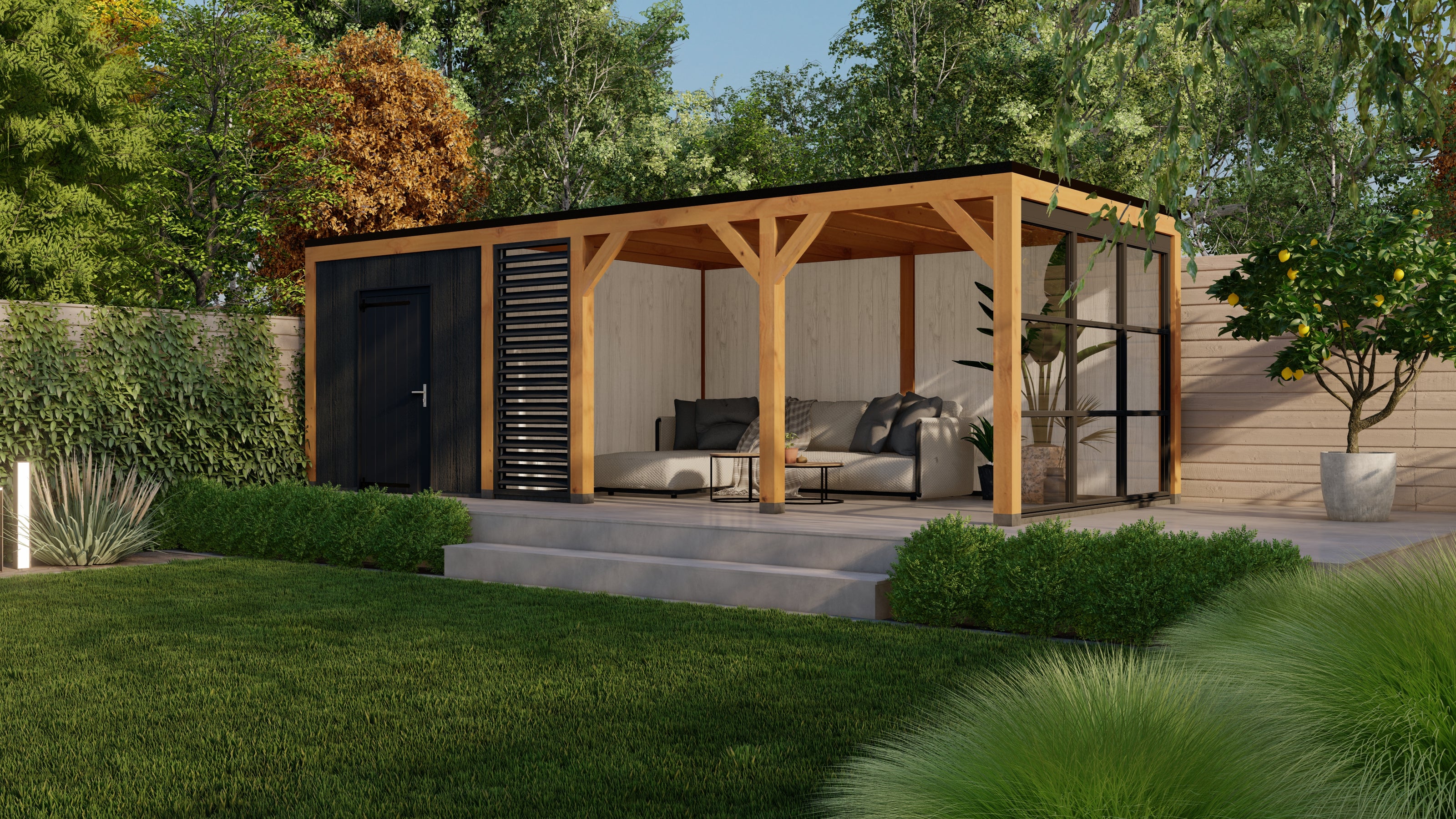 Transformeer je tuin of terras met een luxe buitenverblijf en creëer een stijlvolle, comfortabele leefruimte waar je het hele jaar door van kunt genieten. Met hoogwaardige afwerking, maatwerkopties en extra comfort is dit de perfecte keuze voor wie net dat beetje extra wil.