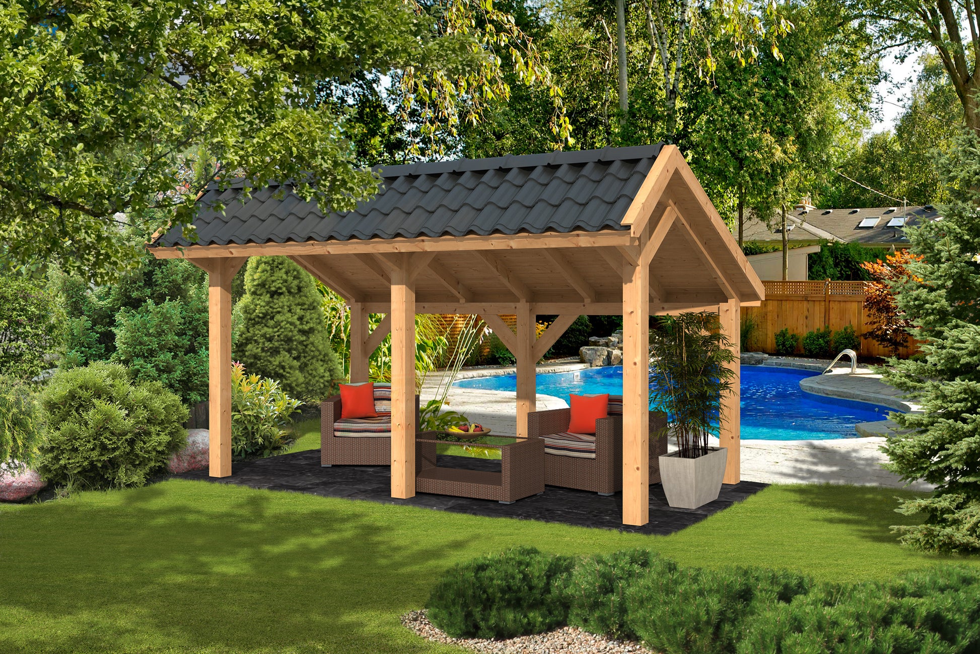 Deze prachtige kapschuur is vervaardigd uit hoogwaardig Douglas hout, bekend om zijn duurzaamheid en natuurlijke uitstraling. Met een geschaafde afwerking straalt de Bergen klasse en elegantie uit, waardoor het een aanwinst is voor elke buitenruimte.