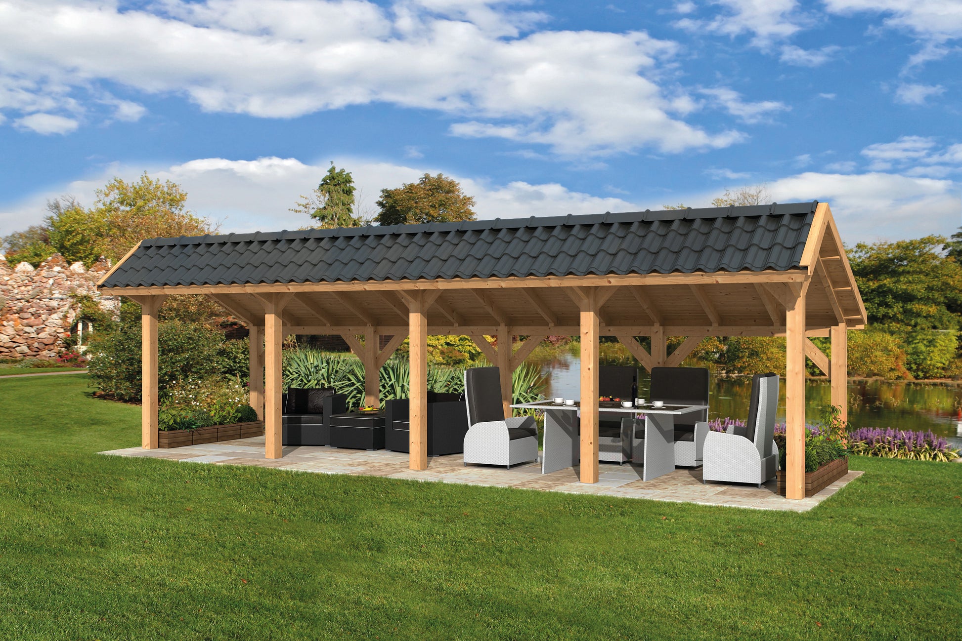 Met indrukwekkende afmetingen van 306 cm diep, 888 cm breed en een hoogte van 281 cm, is dit tuinhuis ontworpen om aan al uw ruimtebehoeften te voldoen. Gemaakt van hoogwaardig Douglas hout, biedt het duurzaamheid en een natuurlijke uitstraling die perfect past in elke buitenomgeving.