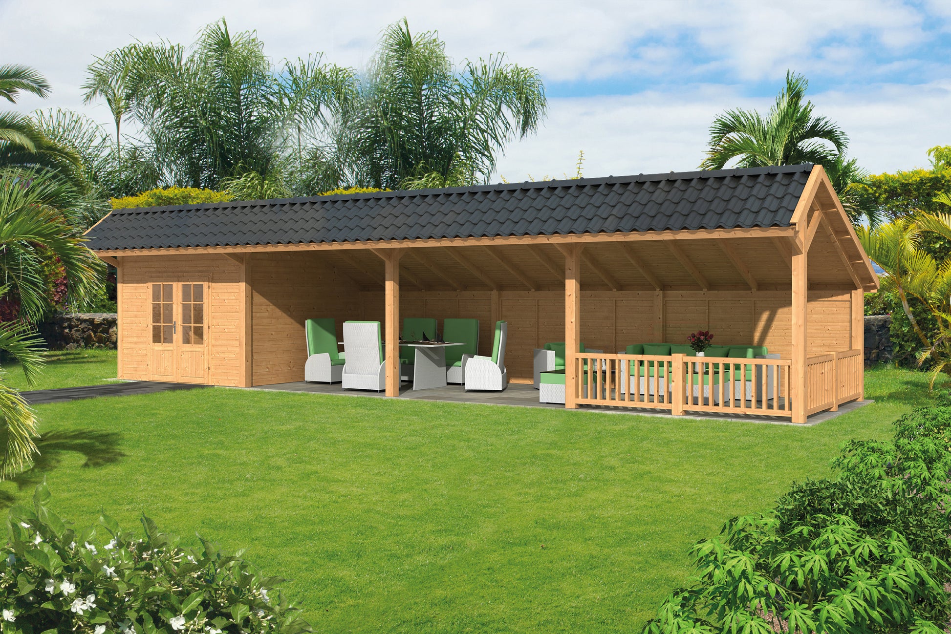 Bergen XL Type 11 is gemaakt van geschaafd Douglas hout, bekend om zijn duurzaamheid en natuurlijke uitstraling. Het onbehandelde hout is gedroogd en van A-kwaliteit, wat zorgt voor langdurige prestaties en weerbestendigheid, zelfs in de meest uitdagende omstandigheden.